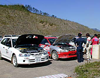 A2クラスの再車検。優勝した工藤選手のシビックはエアコン、ガラスサンルーフ付きで快適そう。