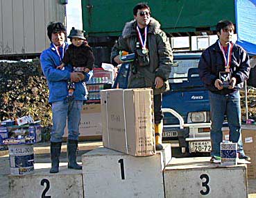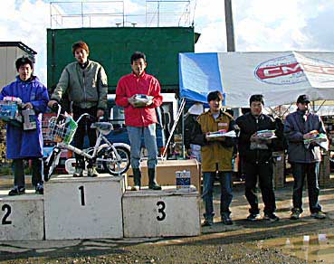 11月18日 CMSC仙台の主催により2001宮城県ダートトライアルシリーズ最終戦 (全6戦)「CMSC仙台もみじがりトライアル」が仙台ハイランドオフロードコースで各地より93台を集めて開催されました。 晩秋 の仙台ハイランドは昨年と違って雪も降らず快晴で路面は前日まで降り続いた雨の為ウエット。午前9時競技進行とともに路面が乾いてきそうなくらい良い天気の中、競技スタート。 1トライはウエットなのでタイムを詰めるより様子見的な走りで、2トライの路面はやはりドライになって一気に7〜8秒も詰めてくる選手が続出してベストタイムの更新が続き白熱しました。 今回の見所はクラス3のポイントリーダーで金満ドライバーの星光行選手とそれを追いかける若手の貧乏ドライバー斉藤寛史選手の攻防とクラス5の今野昌弘選手が地区戦ドライバーの意地を見せて優勝できるか?だったが、下馬評通りヤマヤ御一行様軍団をもけちらし斉藤選手がブッチギリで優勝して2001年度チャンピオンを決め、今野昌弘選手は今回も4位で来年の地区戦展望に暗雲が立ちこめるような最終戦となってしまった。どうした今野選手エボ3の須田選手と0.4秒差じゃちょっとやばいぞ。もしかしてこれをきっかけに来年、主催する気になったりしたらご一報下さい。(今野君たのむよ〜。談:佐藤栄一) これで星選手のお下がり部品で走っている村岡選手がいたらもっと面白かったはずなので少し残念。来年シビックでのカムバックに期待しよう。 と言うことで来年、更に盛り上がりを期待させながら2001年シリーズ戦は終了しました。参加者の皆さんありがとうございました。 1月13日(日)の表彰式&新年会(パレスへいあん)でお会いしましょう。