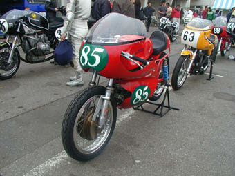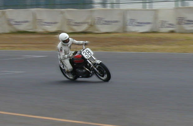 予選は路面温度が上がり久々に25秒台が出て19位。スターティングリッドの前後にはトライアンフやノートンコマンドがたくさんいて前の方には4気筒勢とすごく早いハーレーが2位につけていた。決勝は一つ順位を上げて18位でチェッカーを受けました。