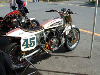 10秒508を出し予選2位をゲットしたハーレーXR750。バイクが速いのか?ライダーが上手いのか?それにしても10秒は早い。