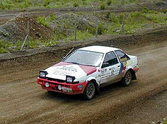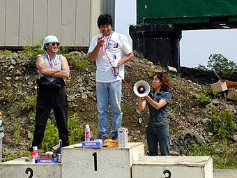 いつも大会を盛り上げてくれる桜井選手。アリタリア風のカラーリングにしてきた武蔵選手のMR2には勝ったが小野選手のAE86に破れ今回は2位。
