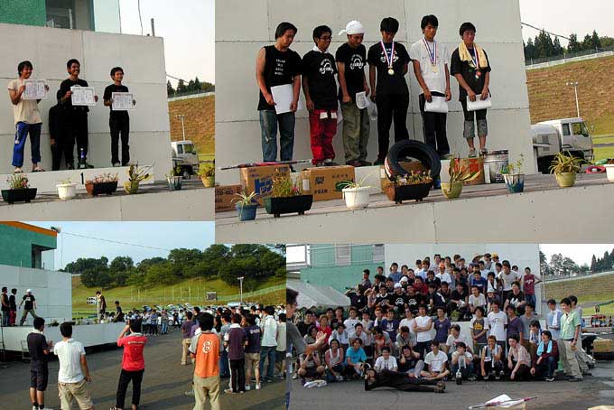 競技は気温38°、路面近くの温度は48°を軽くオーバーするほどの猛暑のなか、個人こそ地元の東北大学が優勝したものの、九州大学が平均的に速く優勝が九州大学、2位が東北大学、3位が名古屋大学となりました。