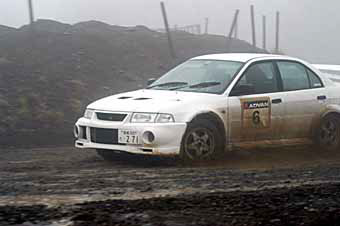 4月20日 2003年宮城県ダートトライアルシリーズ第2戦「2003 CMSC仙台 ダイヤスタートライアル」が宮城県シリーズとJMRC東北ジュニアシリーズダブルタイト戦のJAF公認準国内格式競技として、仙台ハイランドオフロードコースで東北各地から多くの参加者を集めて開催されました。 前日からの雨でコースはウエット状態、深い霧が朝から立ちこめ選手にとってもオフィシャルにとっても「ヘビー」な一日でした。しかし雨量は少なく水はけの良い土質と言うこともありコース上に大きな水たまりが出来るほどでもなく各選手はスリッピーなコースをものともせず果敢にアタック、各クラスで熱戦を繰り広げました。