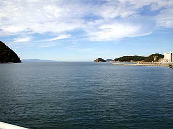 好天に恵まれたスタート会場から見た陸奥湾。自然のパノラマが広大に広がります。