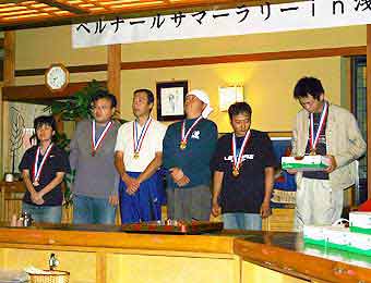 Aクラス右から優勝の工藤芳文/畠山慶長組、山本勝規/玉熊孝次 組、詔尾秀公/沼尾千恵美組の各選手
