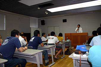 ドライバーズブリーフィングです。指示書やコマ図などの補足説明や、競技全体の諸注意を説明してくれます。