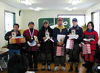 3クラス左から優勝の早坂多門、長島毅、遠藤祐喜、菅野昭雄、加藤拓、真壁由美の各選手。