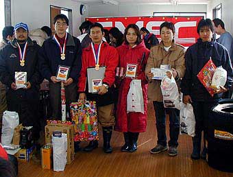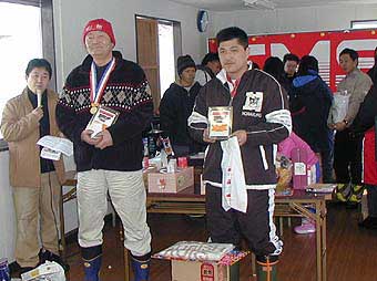 5クラス左から優勝の東海林哲郎、額賀誠史の各選手。FM泉で番組を持つ小原さん、東海林哲郎さんに優勝者のコメントがほしいと言っていたのを「コメをくれる」と聞き違いして喜んでました。