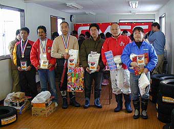 4クラス左から優勝の長島毅、加藤拓、佐藤健二、真壁由美、小畑智弘、小野匡意の各選手。
