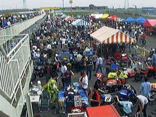 あいかわらず午前7時ごろパドックはもうすでに満員状態でバイクの移動も大変です。今回のピット割り当てはNo17、コントロールタワーに近くて便利でした。
