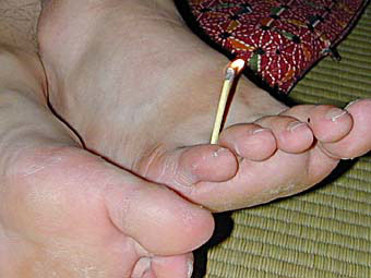 だれの足でしょう?昔トム&ジェリーに良く出てきたシチエーションです。当然マッチ棒を挟まれるのはトムなのですがこの場合のジェリーは誰?